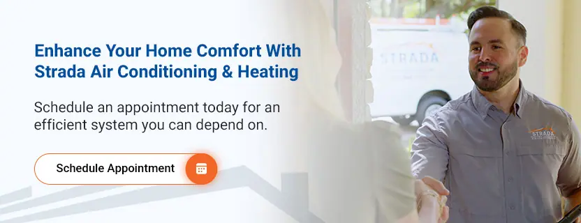 Using your ceiling fans for efficient heating and cooling can maximize your air conditioner and heater while saving power. If you’re concerned about the energy use of your current unit and need expert recommendations, Strada Air Conditioning & Heating is the trusted choice.