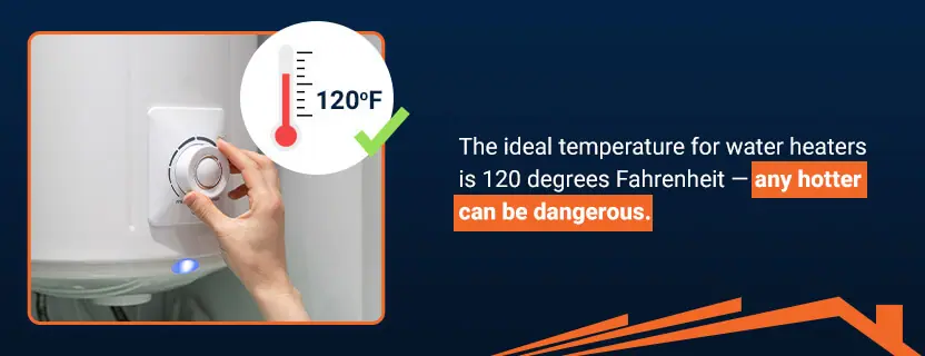 The ideal temperature for water heaters is 120 degrees Fahrenheit — any hotter can be dangerous. If you are comfortable with a lower temperature, lowering it by even a few degrees can make a significant impact on your energy bill.