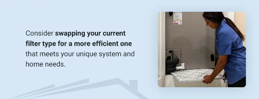 Consider swapping your current filter type for a more efficient one that meets your unique system and home needs.