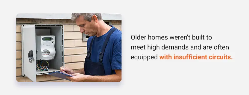 Electrical safety inspections are important for spotting and addressing possible issues and ensuring that your older home’s electrical system adheres to contemporary standards. During a safety check, your electrician will examine your home’s electrical components, including wiring, outlets, switches and more. They’ll assess your system’s safety and compliance and recommend necessary repairs or improvements.
