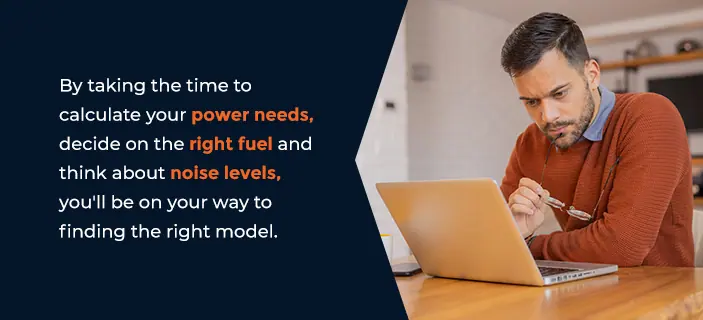 Getting the best generator type for your needs will allow you to stay comfortable during power emergencies. Consider what you want your generator to do, what maintenance you’re willing to perform and the cost to help you narrow down your options. Consider a portable generator if you need something smaller that works best with occasional use. Choose a permanent standby generator for a solution that turns on automatically when the power goes out, requires no fuel storage and can handle all your needs.