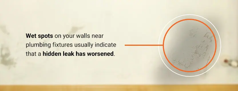 Las manchas de humedad en las paredes cerca de los accesorios de plomería suelen indicar que una fuga oculta ha empeorado. Una fuga puede pasar desapercibida hasta que vea signos visibles como marcas descoloridas o pintura descascarillada o con burbujas. Puede evitarlo inspeccionando regularmente sus paredes y realizando un mantenimiento profesional de la plomería .